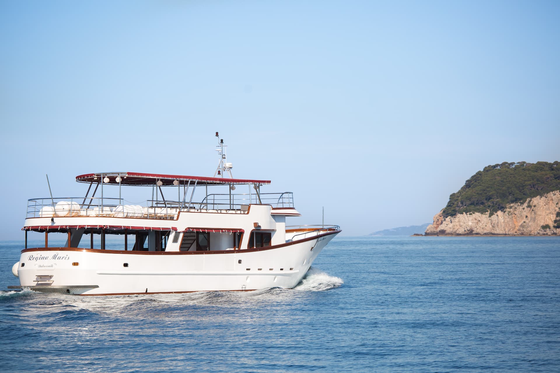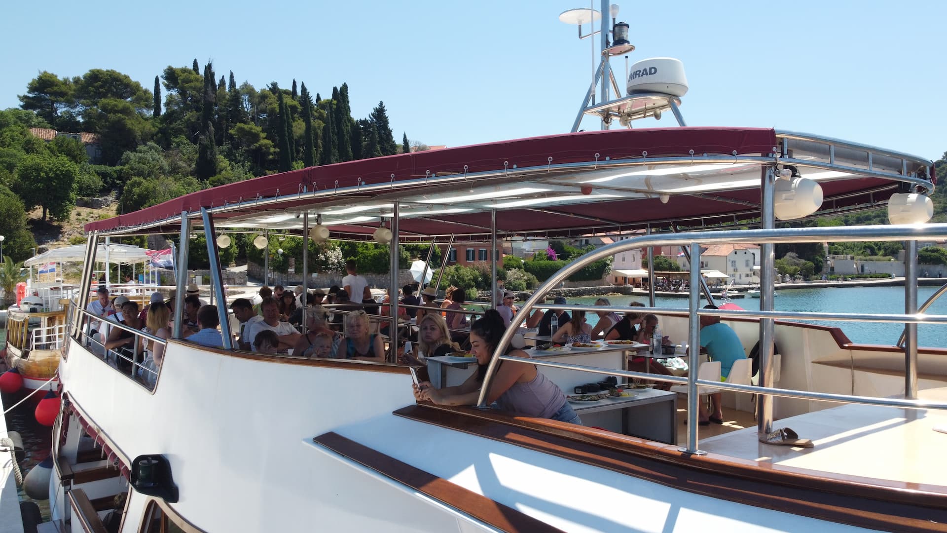 Šipan: As the boat sails toward the largest of the three islands, a traditional Dalmatian-style lunch is served on board. Guests can enjoy a freshly prepared meal—with a choice of fish, chicken, or a vegetarian option—perfectly paired with quality local wine while cruising the Adriatic.