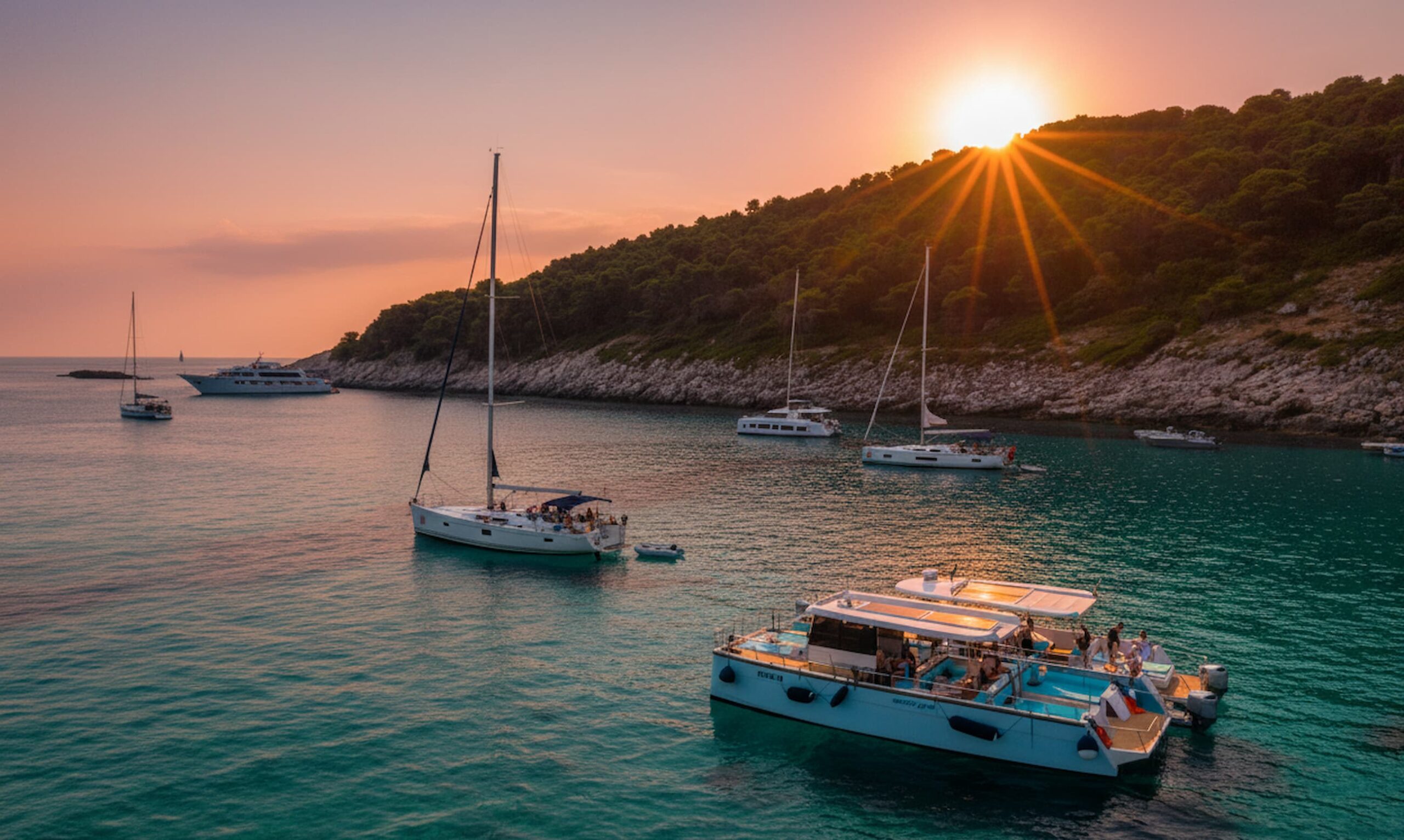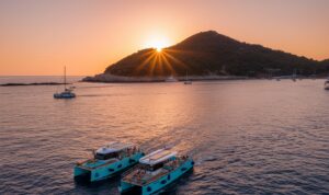 The cruise glides alongside the monumental City Walls and navigates the serene waters between the Old Town and Lokrum Island. As the vessel reaches the open sea, it pauses to provide the perfect vantage point for the sunset.